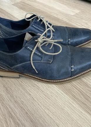 Фірмові шкіряні всередині і зовні туфлі,в районі передньої частини всередині текстиль,бренд не пам'ятаю,стан ідеальний,нюанс -царапинка на носку,в шкарпетці не помітно(останнє фото), розмір 44,вся устілка 30 см