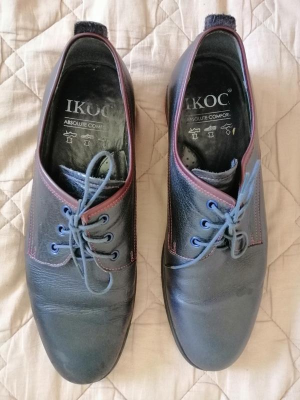 Шкіряні туфлі бренду ІКОС темно-синього кольору з бордовим оздобленням. Практично нові. Взувані кілька разів.