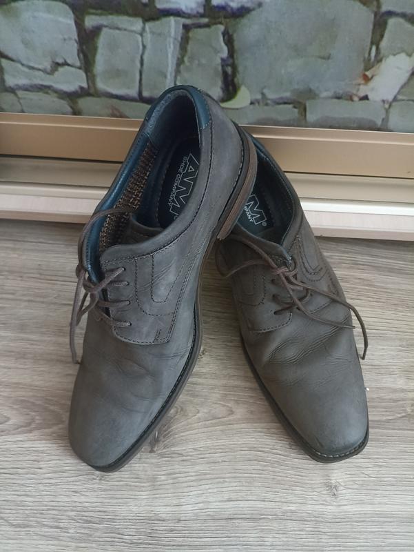 Сезонна знижка !!!!до вересня :)) Туфлі "AM shoe company ". натуральна шкіра(нубук). модель класична,подовжений ніс .р.41. довжина устілки 28 см(враховуйте завужений носок,) стан ідеальний,видно по фото.(є незначні заломи поверху ), колір коричнево-сірий(вдало колір .фото 2,3.) устілка дуже м'яка,на пятці "подушка антистресс." носок і пятка з ефектом затемнення кольору. німецький виробник,взуття якісне,дорогий бренд.(нові стартують ціна від 2000 грн) оплата на карту,або безпечна через шафу. відправка укрпоштою, Нова пошта.