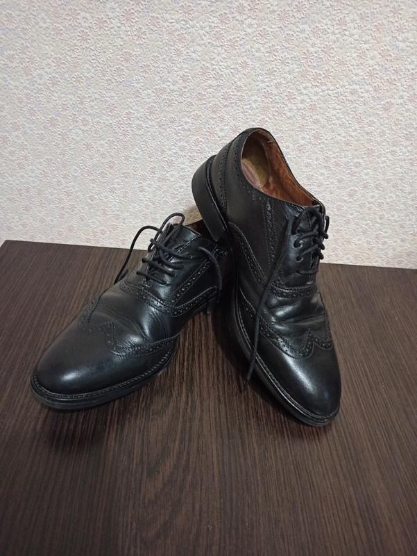 Легенькі, класичні, чорні, шкіряні туфлі. Носилися два сезони. На рівні мізинця вклеєна шкіряна латка.