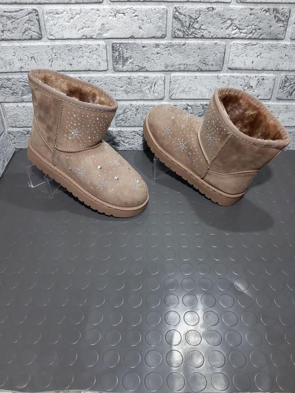 Уггі це універсальна модель для зими, підійде як на кожен день, так і для особливих моментів. Тепло та комфорт вам гарантовані. Модель виготовлена із замші, утеплена щільним хутром. Прикращена стразами на верхній частині черевика