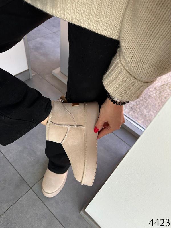 НОВИНКА Код: 4423 Утеплені уггі на платформі - зручне та стильне взуття на холоди! Розмір: 36-40. Виробництво: Туреччина. Матеріал: Натуральна замша. Колір: Бежевий. Підошва: 4/4,5 см. Маломір. Нат. хутро 70% Зима. 36 - 23 см
