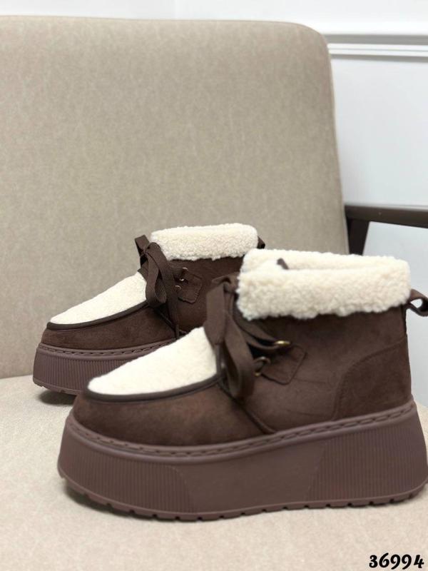 Уггі Колір: шоколад Матеріал:еко замша Підкладка: еко хутро Сезонність: зима Код товару: 36994 ▪️Висота підошви: спереду 4см; ззаду 6см Розмірна сітка : 36-23; 37-23,5; 38-24; 39-24,5; 40-25см.