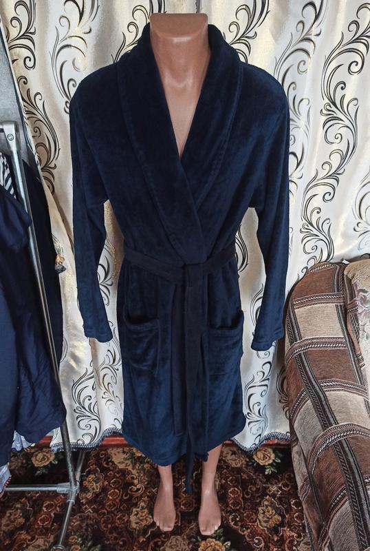 Теплий чоловічий халат Matalan Розмір - EUR L Заміри: плечі 49 см, напівобхват грудей 58 см, напівобхват талії 54 см, напівобхват бедер 56 см, довжина рукава 63 см, довжина 117 см. Тканина - велсофт. Склад: 100% поліестер В дуже хорошому стані