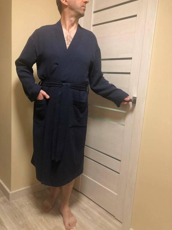 ### В НАЯВНОСТІ розміри: M, L, XL, 2XL Доставка НОВОЮ ПОШТОЮ - лише з обов'язковою передплатою -150грн. Доставка Укрпоштою - лише по повній передплаті По даному товару відправок в суботу немає Відправка в день замолвення - лише при оплаті замовлення до 12-30 Чоловічий халат із мусліну забезпечить комфорт та затишок вдома. - ### Халат виготовлений зі 100% 2-шарової бавовни, м'який і приємним на дотик. - ### Зав'язка на поясі, з боків дві накладні кишені. - ### Тканина: 100% бавовна, Корея - ### Щільність: 120 г/м2 - ### Колір: синій Розміри: M; L; XL; 2XL