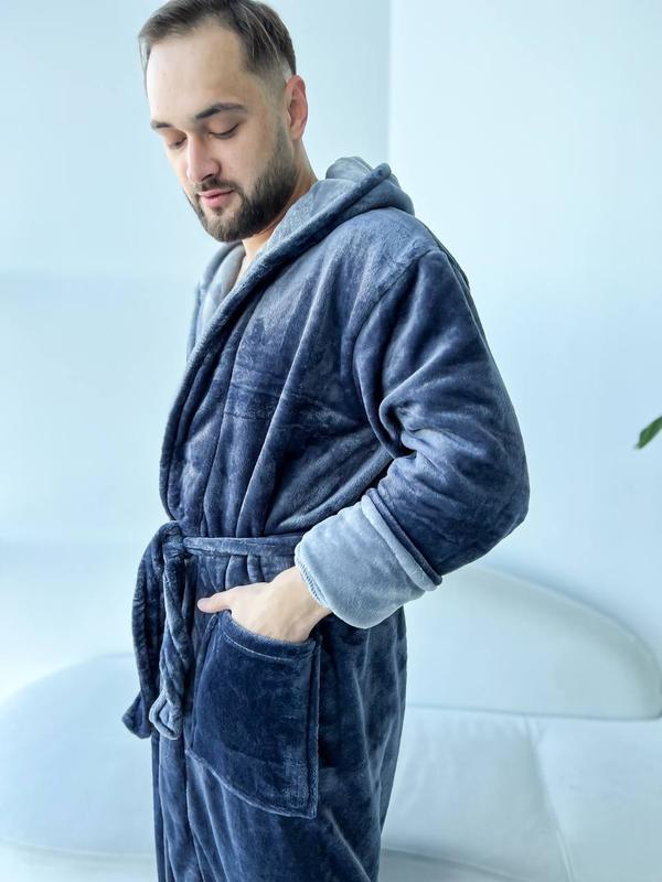 Дуже теплий, приємний на дотик, мʼякий. • Розміри: L, XL, 2XL, 3XL •тканина махра •мʼякий та приємний до тіла •халат з кишенями, поясом та капюшоном Розмірна сітка : L: груди 94-100, стегна 98-104 XL: груди 99-108, стегна 104-112 2XL: груди 108-115, стегна 112-118 3XL: груди 115-122, стегна 118-125 на моделі розмір L (груди 100, стегна 102 см)