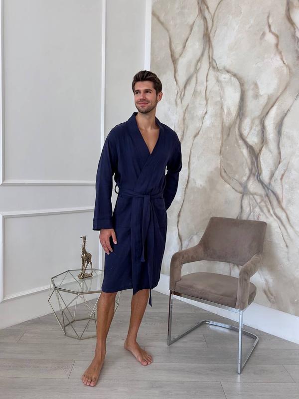 Мужской халат из муслина Estet. Халат изготовлен из 100% 2-х шарового хлопка, мягкий и приятный на ощупь. Простой и комфортный крой позволяет чувствовать себя максимально комфортно. Тканина: 100% бавовна, Корея. Плотность: 120 г/м2 Кольори: Темно-серый (код М50) Темно-синий (код М51) Размеры: M; L; XL; 2XL ✔️Цены: 1450 грн На модели Размер M. Параметры модели: Рост -190 98/75/90