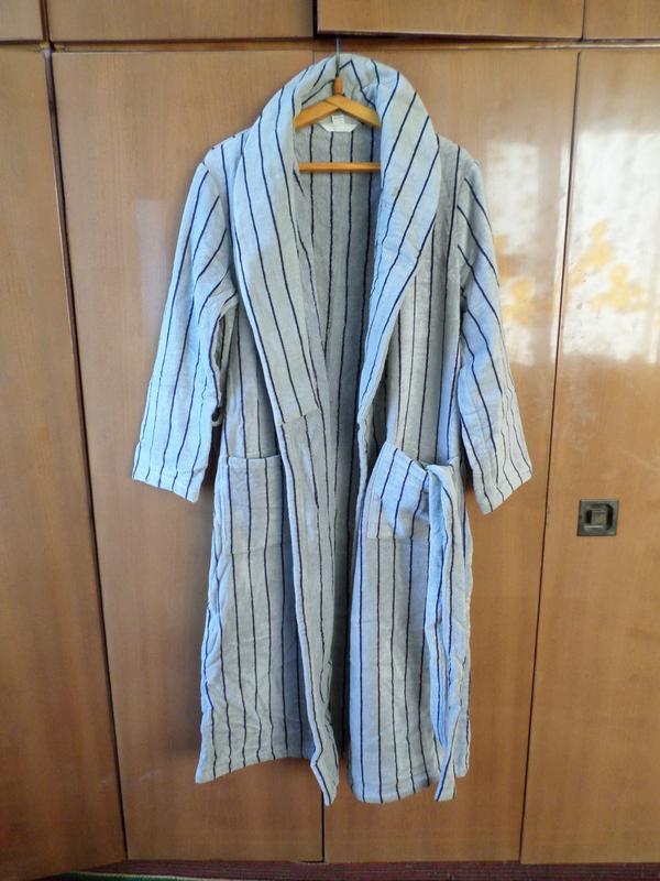 Чоловічий махровий халат , часів срср . Розмір 50 - 52 . На вороті є п"ятна , схожі на іржу , див фото .