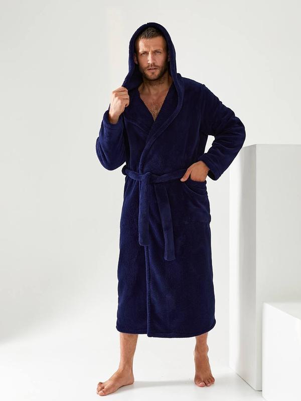 Халат мужской махра ниже колена капюшон 48-56 р-р