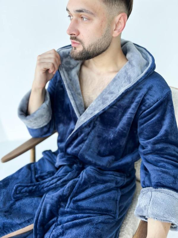 Чоловічий теплий хала DO2592/1 Розміри: L, XL, 2XL, 3XL тканинна махра мʼякий та приємний до тіла халат з кишенями, поясом та капюшоном Розмірна сітка : L: груди 94-100, стегна 98-104 XL: груди 99-108, стегна 104-112 2XL: груди 108-115, стегна 112-118 3XL: груди 115-122, стегна 118-125 на моделі розмір L (груди 100, стегна 102 см)