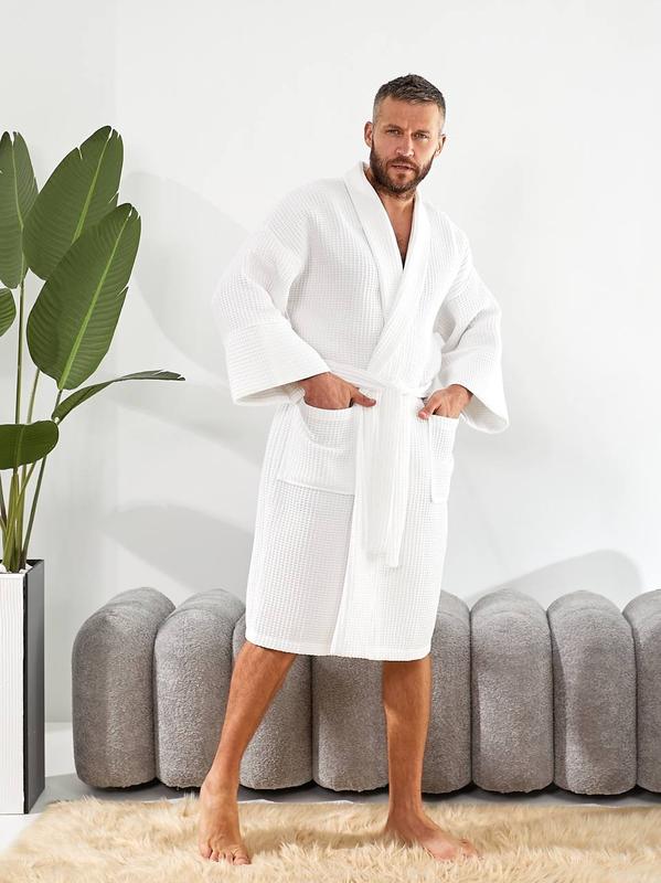Чоловічий білий халат із кишенями вафля фемилі лук, унісекс, жіночий бавовна