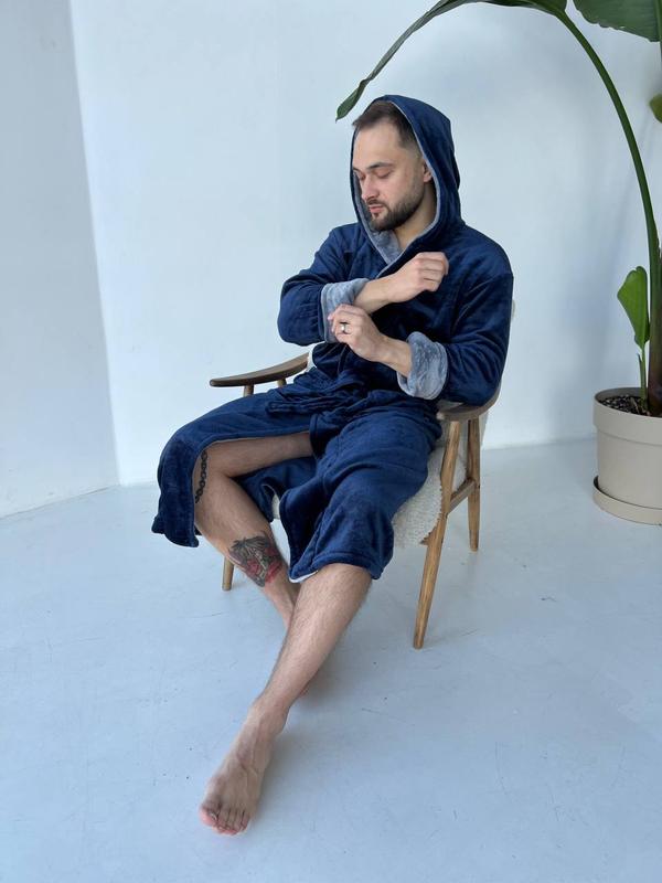 Чоловічий теплий халат🧔🏻♂️ • Розміри: L, XL, 2XL, 3XL •тканина махра welsoft •мʼякий та приємний до тіла •халат з кишенями, поясом та капюшоном 👇🏻👇🏻👇🏻👇🏻 Розмірна сітка : L: груди 94-100, стегна 98-104 XL: груди 99-108, стегна 104-112 2XL: груди 108-115, стегна 112-118 3XL: груди 115-122, стегна 118-125 🔺на моделі розмір L (груди 100, стегна 102 см)