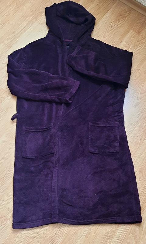 цвет — темный, свеклы — фиолетовый Плечи 62 см Рукав 63 см Между подмышками по спине ширина 74 см Длина 111 см Нет пояса. Снизу с правой стороны есть след, словно пропален. В другом состоянии очень красиво