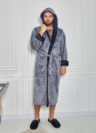 Теплий та комфортний чоловічий халатик комбінований з капюшоном Рукав регулюється манжетом Тканина Wellsoft: хлопок 50%, поліестер 50%, Туреччина Щільність: г/м2 Ефект: двухсторонній ворс Артикул: 4002