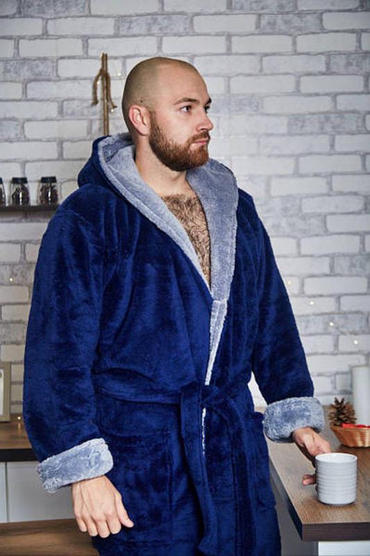 Чоловічий махровий халат теплий зимовий халат з капюшоном