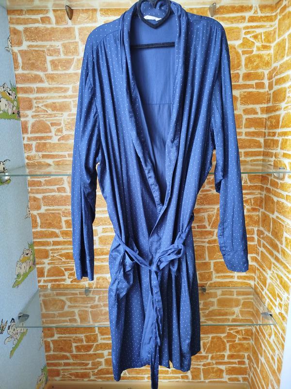 Чоловічий котоновий халат з поясом M &S 2XL Довжина від верху плеча 112 см ПОГ 73 см Рукав від плеча 65 см Є накладні кишені 100. % cotton Made in Vietnam.