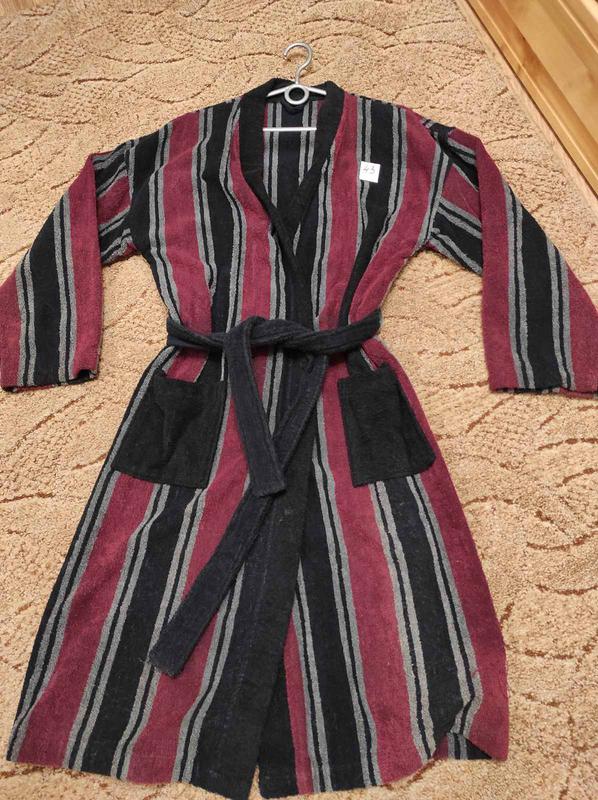 Заміри : довжина по спинці 108 см - між пахвами 60 - плече + рукав 76 - шир рукава на ур зап'ястя 17. Стан ідеальний. Комфортний халат з 100% бавовни.
