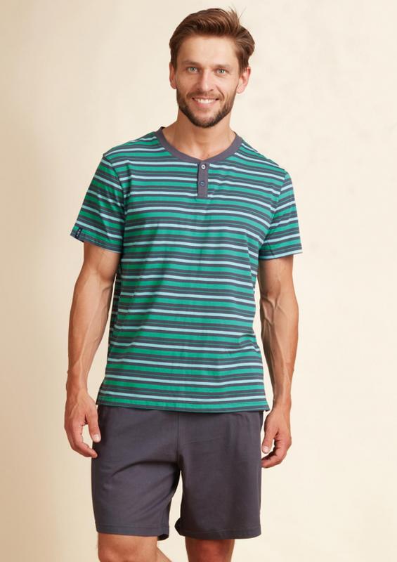 Виробник: Key (Польща) Модель: MNS 377 A22 Категорія: одяг для сну та відпочинку/піжами Колекція: весна-літо 2022 Комфортна чоловіча піжама Key MNS 377 A22 з м'якого бавовняного трикотажу. Детально: - вільна футболка в смужку, з коротким рукавом, виріз горловини з планкою, що застібається на гудзики; - зручні шорти з бічними кишенями, з м'якою гумкою і куліскою в поясі. Колір: як на фото Розмір: 4XL Склад: 100% бавовна