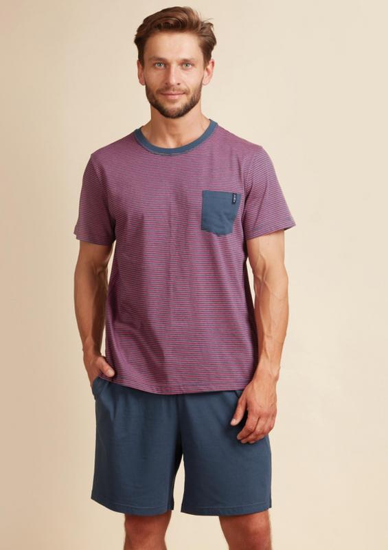 Виробник: Key (Польща) Модель: MNS 363 A22 Категорія: одяг для сну та відпочинку/піжами Колекція: весна-літо 2022 Комфортна чоловіча піжама Key MNS 363 A22 з м'якого бавовняного трикотажу. Детально: - вільна футболка в смужку, з коротким рукавом, круглим вирізом горловини та нагрудною кишенею; - зручні шорти з бічними кишенями, з м'якою гумкою і куліскою в поясі. Колір: як на фото Розмір: 4XL Склад: 100% бавовна
