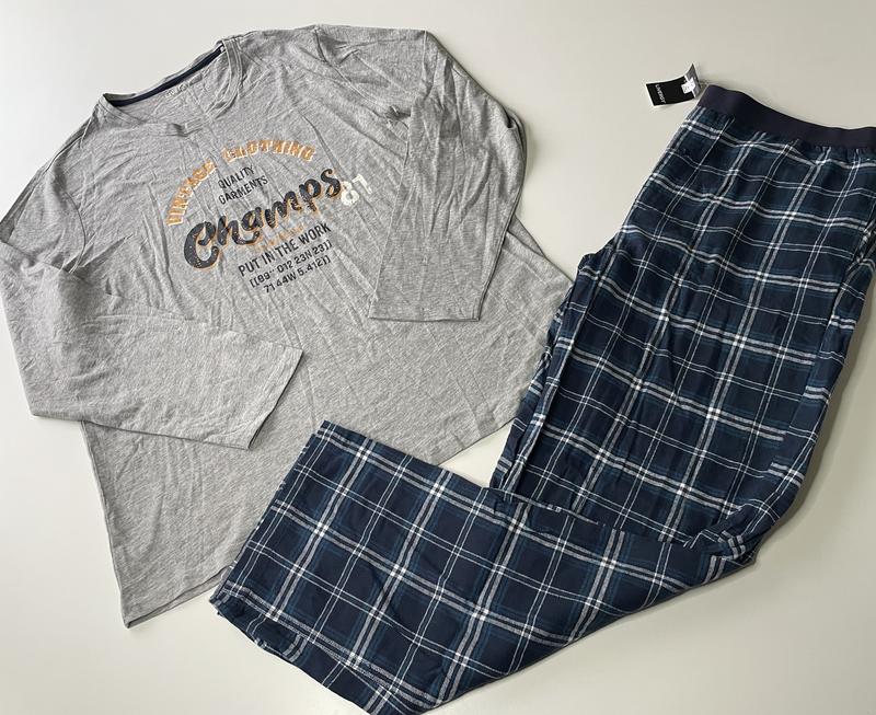 Розмір xl56/58 євро Кофта Півобхват грудей 64 Плечі 48 Рукав 69 Довжина від плеча 74 Штани Півобхват резинки 47,5 тягнеться до 67 Півобхват стегон 60 Довжина/крок 109/80 Посадка 32/40 Якісна піжама/костюм для дому від німецького бренду Кофта трикотажна Штани фланелеві тепліші від кофти Оплата на картку/БО