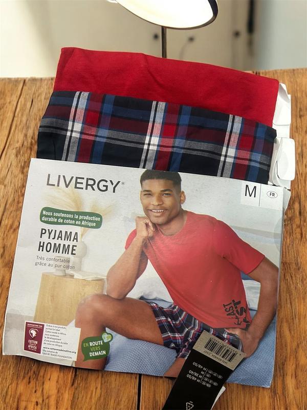 🌙 Затишок та Стиль: Піжама LIVERGY для Нього! ✨ Хочете відчувати себе комфортно, але при цьому виглядати стильно навіть вдома чи під час сну? Тоді цей набір від LIVERGY створений саме для вас! Комплект складається з червоної футболки з коротким рукавом та шорти в класичну червоно-синю клітинку Виготовлено з чистої бавовни (pur coton). Це гарантує приємні відчуття на шкірі та відмінну повітропроникність.