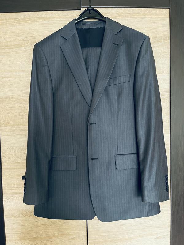 Стан - ідеальний. Якість преміум. Куплявся дуже дорого. Колір: темно-синій. Заміри: піджак: ПОГ - 51 см, довжина - 79 см, рукав - 63 см. Брюки класика: ПОТ - 45 см, ПОС - 53 см, довжина - 106 см