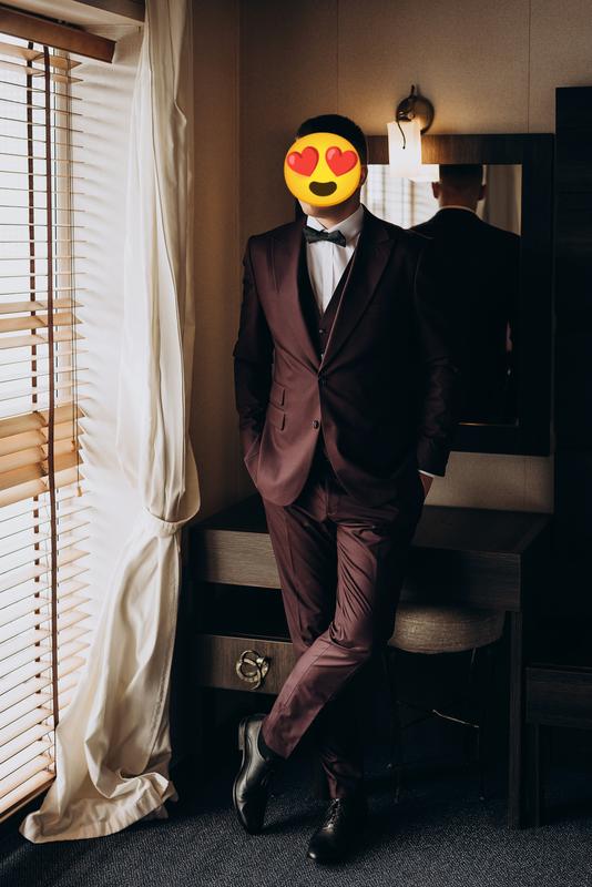 Чоловічий костюм трійка як новий одягли один раз на весілля. Бренд Yarmich. Розмір 48 але орієнтуйтесь на заміри . Піджак Довжина 80см ПОГ 56см Рукав 66 см Ширина плечей 50 см Желет ( на спині регулюється) Довжина 62см ПОГ 63см Брюки Довжина 105см Пояс- 48 см Шаг - 81 см Ціна 5000 грн