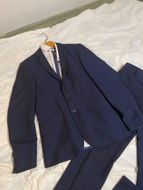 Сорочка добре тягнеться рукав 62 довжина 65 пог 47 розмір С штани пояс 40 довжина 102,5 ширина штанини 18 піджак рукав 69 пог 47 довжина 75 тканина якісна Склад на фото
