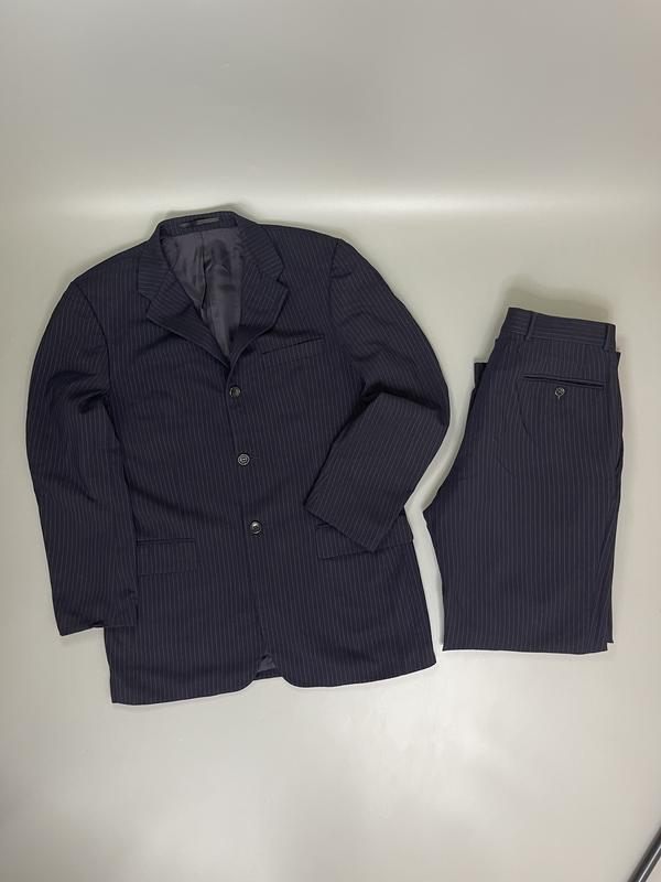 Темно синій костюм botto quiseppe двійка, класичний, нарядний, в полоску, смужку, італійсь...