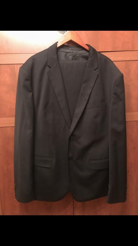 Костюм класичний чорного кольору. Довжина штанів від пояса 113см, об'єм в поясі 108 см; довжина рукава від плеча 69 см, ширина піджака 64 см