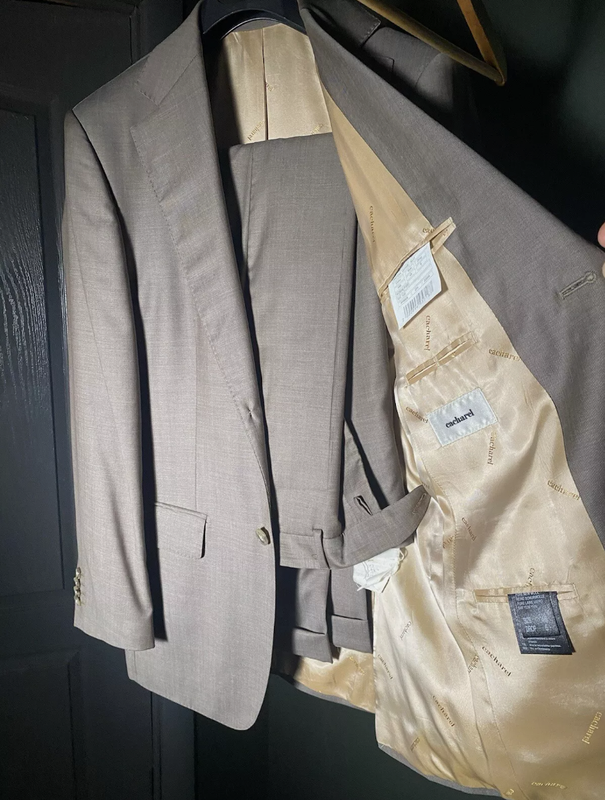 Увага - тільки для тих кто розуміється на класичному стилі, цінителі масмаркету з вузькими краватками, піджаками в обтяжку та вузькими лацканами вам мимо. 1. Матеріал - вовна 2. Довжина піджака - закріває сідниці 3.Ширина лацкана - більше половини грудей 4. Бренд - досить хороший 5.Виконання деталей - на вищому рівні (строчки, петлі, додатковий матеріал під пахвами іт.д. 6. Береш в руки і бачиш дорогу та якісну річ Підніміть свій стиль із цим чоловічим костюмом Cacharel натурального бежевого кольору. Виготовлений з високоякісних матеріалів, цей костюм-двійка ідеально підходить для будь-якого випадку. Костюм має регулярну посадку, тому його зручно носити цілий день. Бренд Cacharel відомий своїм вишуканим стилем і цей костюм не став винятком. Він ідеально підходить для чоловіків, які хочуть виглядати чітко та елегантно. Ідеально підходить для тих, хто хоче формальний або напівофіційний образ. Цей костюм обов'язково повинен бути у вашому гардеробі. Чоловічий костюм в ідеальному стані, майже не носився, в хімчистці не був. Увага: Біля задньої кишені штанів є розрив («хтось» набрав вагу і намагався надіти ці штани, а потім сів). Той, хто розбирається в піджаках, зрозуміє, що він пошитий за всіма канонами стилю: широкий лацкан, правильна довжина подолу піджака, ручна строчка навколо кишень та лацканів (не вистачає лише робочих петель на рукавах - це вважається вершиною ручного пошиття костюмів