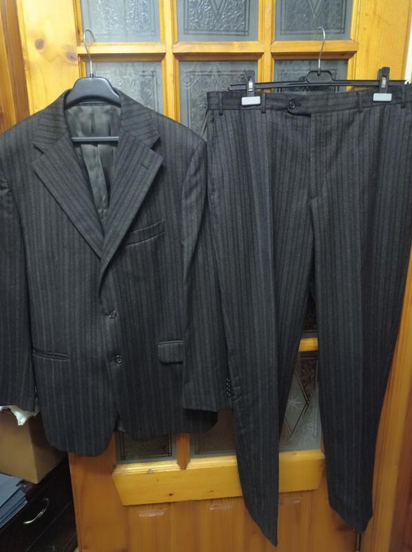 Піджак: довжина-78см. , рукав-65см. . ПОГ-60см. . плечі-50см. Штани: довжина-106см. . ПОТ-49см. , ПОБ-57см. , ширина штанки впахуПО-33см. . внизуПО-22см. . посадка спереду-33см. .ззаду-45см.