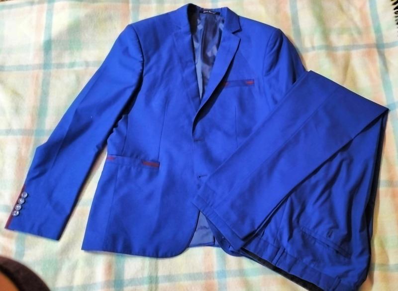 Чоловічий костюм синього кольору Стан ідеальний. Піджак 52 розмір штани 50 розмір. Одягали декілька разів.
