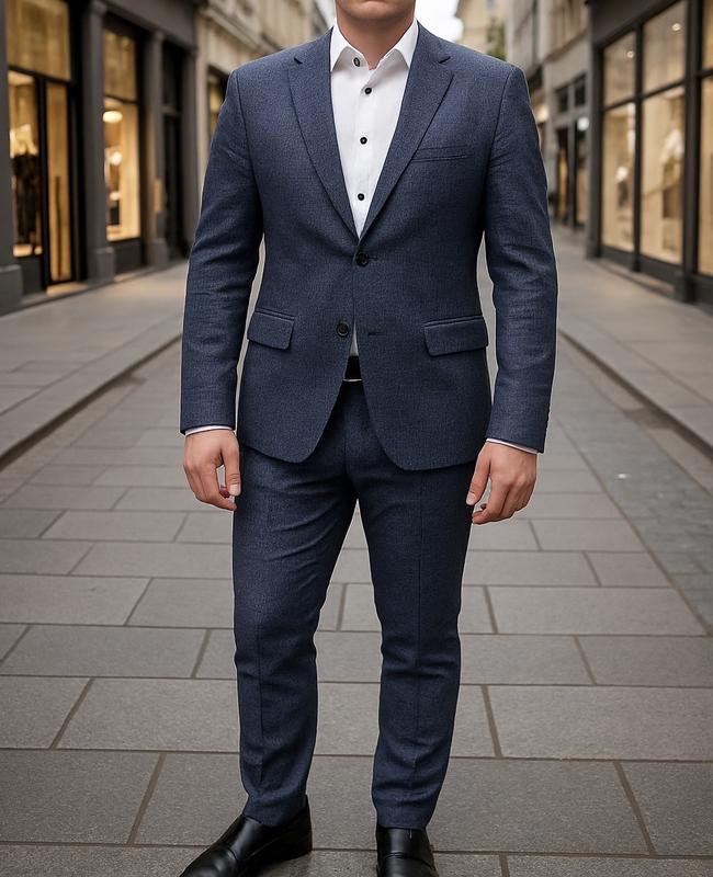 Стильний молодіжний костюм. Брендовий, якісно пошитий. Виглядає дорого та елегантно. Стан ідеальний. Заміри : Довжина рукава - 67 см Ширина плечей - 44 см Довжина піджака посередині - 80 см Ширина під пахвами- 53 см Ширина брюків в поясі - 46 см Ширина в бедрах - 55 см Довжина- 106 см Ширина внизу - 19 см