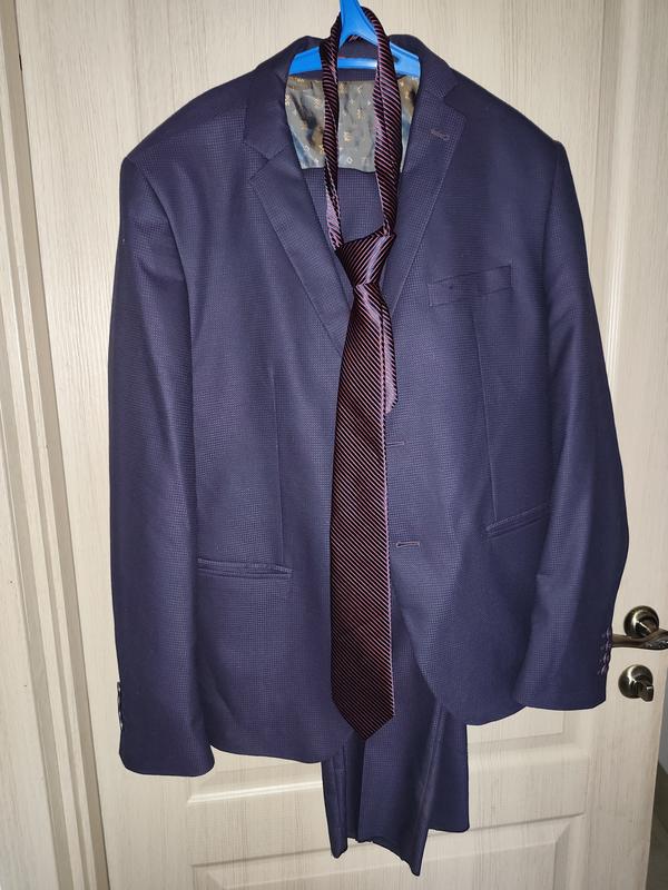 Класичний костюм, одягали один раз на весілля. Made in Italy. Напівоб'єм грудей 50 см, довжина піджака 72 см, довжина рукава 65 см. Напівоб'єм талії (брюки) 45 см, довжина брюк 110 см.