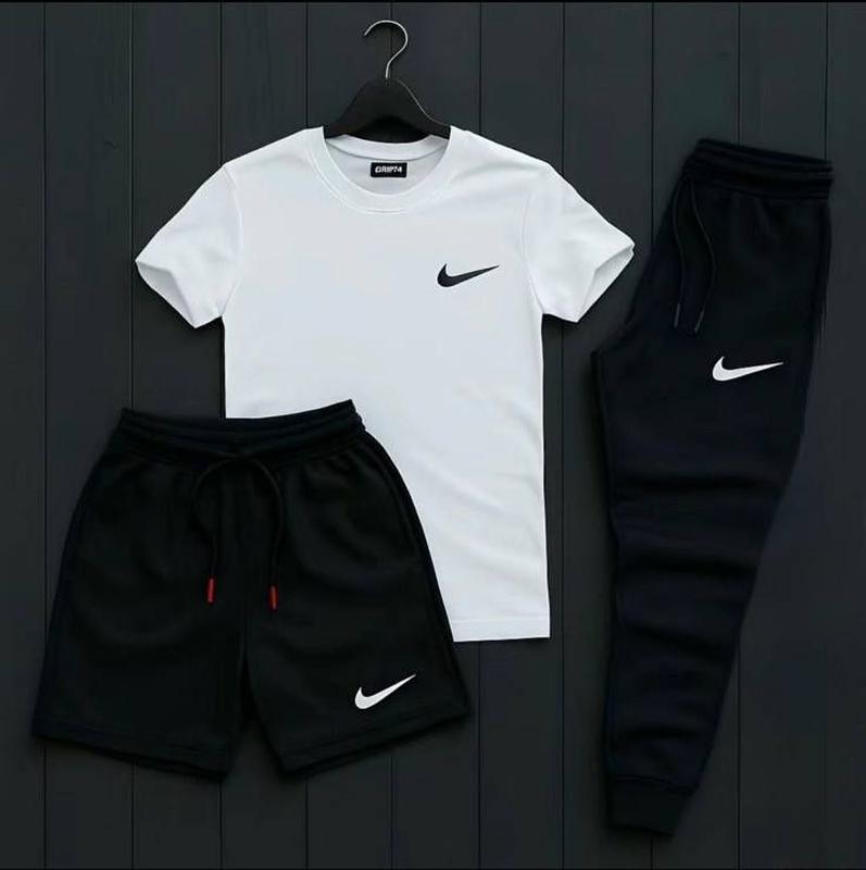 Костюм трійка арт. ns. 1735 Штани + шорти + футболка Розміри: M(48-50), L(52-54) Тканина: двонитка Кольори: сірий+білий, чорний+білий Ціна: 1099 грн