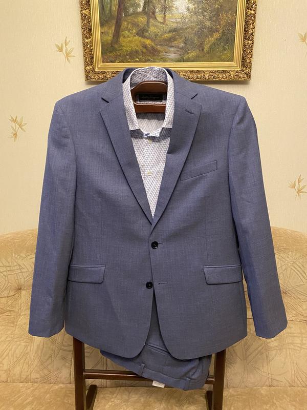 Елегантний чоловічий костюм відомого англійського бренду Charles Tyrwhitt із 100% мериносової вовни. Колір стриманий блакитно-сірий. Піджак класичний, напівприталений, застібка на 2 ґудзики, на шлицях рукавів функціональні петлі. Розмір 44R (52-54). Брюки класичні, прямого фасону. Розмір 34W/34L Стан нового. Одягався лише один раз, кишені піджака із заводськими технічними швами. Бренд Charles Tyrwhitt London — відомий своїми бездоганними костюмами та якістю пошиття. Костюми на сайті бренду мають ціну в діапазоні £700-1200 Ідеальний варіант для ділових зустрічей чи урочистих подій. Додаткові фото та заміри за вимогою.