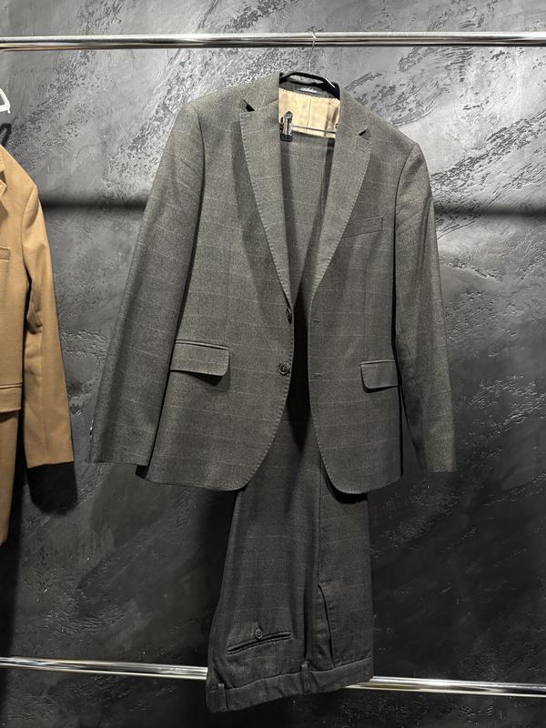 Костюм неймовірно якісний в ідеальному стані, одягався декілька разів. Кишені на піджаку навіть не роспороті. Приталений, ідеально сидить на 54 розмір. Додав його фото з фотосесії. дефектів немає, не знайшов навіть малих затертостей.