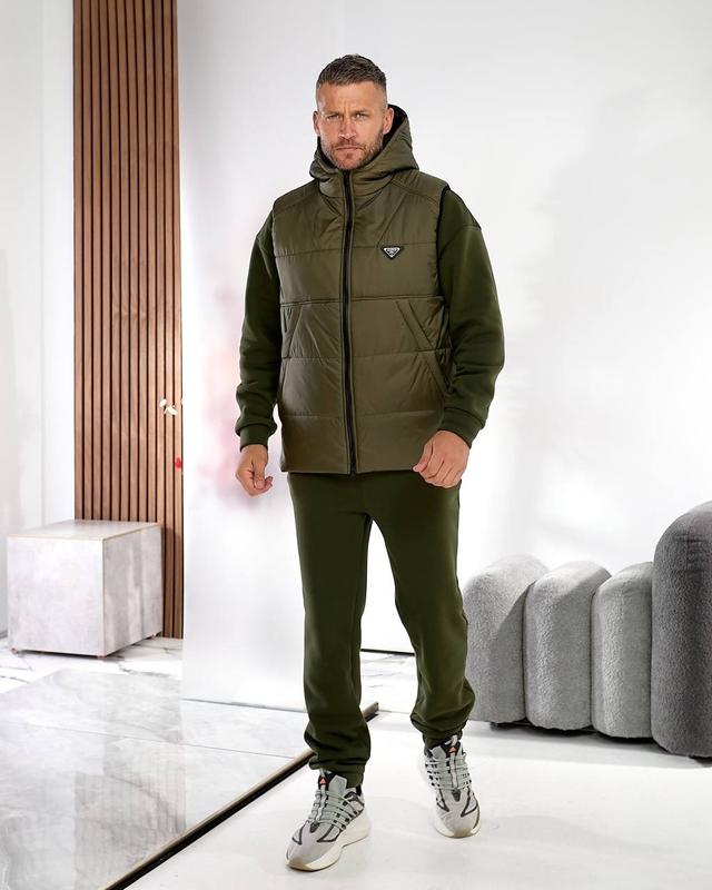 ❤️❤️❤️ Новинки ❤️❤️❤️ 🚀 Костюм у спортивно-міському стилі — must have цього сезону! 🚀 Костюм 3-ка ,чоловічий з утепленим жилетом. Мод 562 Розмір - 48, 50, 52, 54, 56 Тканина- тринитка на флісі,(якість супер), жилет-плащівка стьобана на силіконі 150. Колір- капучино/світло-бежевий, хакі, чорний, шоколад, світло-сірий/графіт. Стильний і практичний комплект для активного відпочинку та щоденного носіння. Костюм складається з: • худі з капюшоном і кишенею кенгуру, прямий зручний крій, м’який і теплий трикотаж, приємний до тіла. • Прямих штанів - з бічними кишенями ,комфортна посадка, еластичний пояс, фіксується шнуром, знизу манжети на резинці. • Утепленого жилета на блискавці з двома бігунками високої якості, легко застібається та розстібається , легкий і теплий, з вшитим капюшоном. Жилет має пʼять кишень - чотири бокові врізні кишені з похилим входом — зручні для рук і дрібних речей, і один внутрішній. На грудях -нашивка, на підкладці з плащівці. Утеплений жилет і теплий костюм -поєднання елегантності та практичності. Якісні матеріали, ідеальний крій і лаконічний стьобаний дизайн створюють образ сучасного чоловіка, що цінує комфорт і стиль.🏆 Худі 48- ог-112, от- 110, ос-106,довжина рукава від горловини-77,довжина коф. -67 см. 50- ог-116, от- 114, ос-110, довжина рукава від горловини-77,довжина коф. -67см. 52- ог-122,от -120, об-116, довжина рукава-80, довжина коф. - 69 см. 54- ог-126, от-124, об-120, довжина рукава-81, довжина коф- 71 см. 56- ог-132, от-130, ос-126, довжина рукава-82, довжина коф- 71 см. Штани з кишенями: 48- от-74/100, ос-106, довжина- 107 см. 50- от-76/104, ос-110,довжина - 111 см. 52- от-80/108, ос-114, довжина-114 см. 54- от- 84/116, ос-126, довжина -115 см. 56- от- 86/124, ос-130, довжина -115 см Жилет 48- ог-118, от-118, об-118, довжина-68 см. 50- ог-122, от-122, об-122, довжина-69 см. 52- ог-126, от -126, об- 126, довжина-69 см. 54- ог-130, от-130, об-130, довжина - 71 см. 56- ог-134, от-134, об-134, довжина - 72 см. 🤩