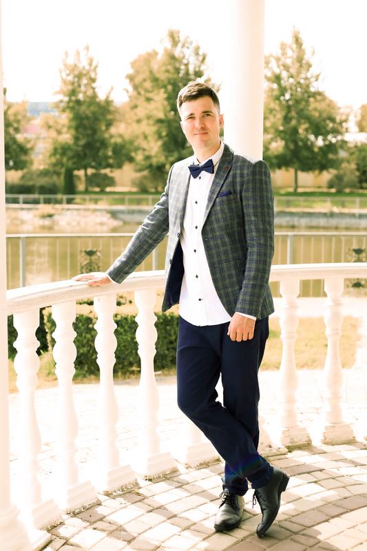 Чоловічий костюм трійка. Піджак, штани і сорочка біла. Штани темно-синього кольору, піджак в клітинку, сорочка біла з білими гудзиками і довгими рукавами. Стан нового, одягнутий 1 раз. Якість супер. Відмінний вибір для важливих подій та святкових заходів. Створить неперевершений і стильний образ. За замірами в приват