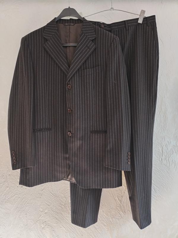 Розкішний вовняний коричневий у смужку костюм від canali, italy