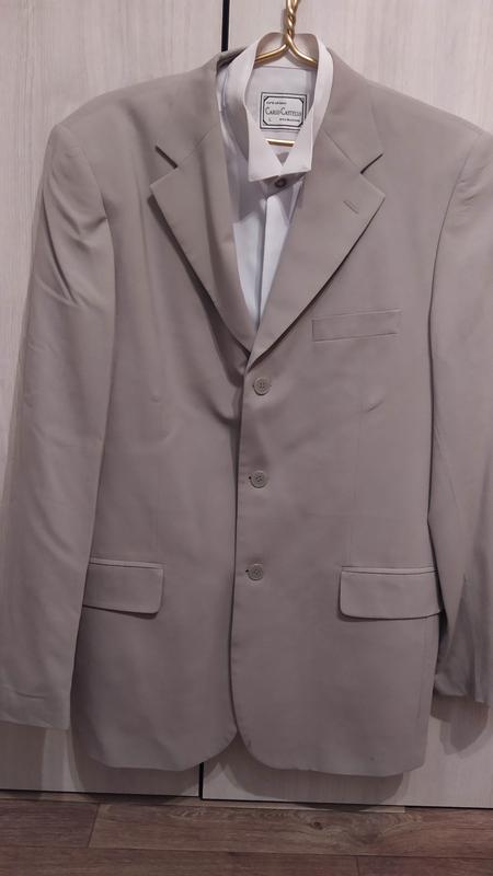 Костюм бежевий Gregory Arber: піджак + штани. Розмір 182/96/84. Склад 98% вовна, 2% лайкра Сорочка біла Carlo Castello розмір L.