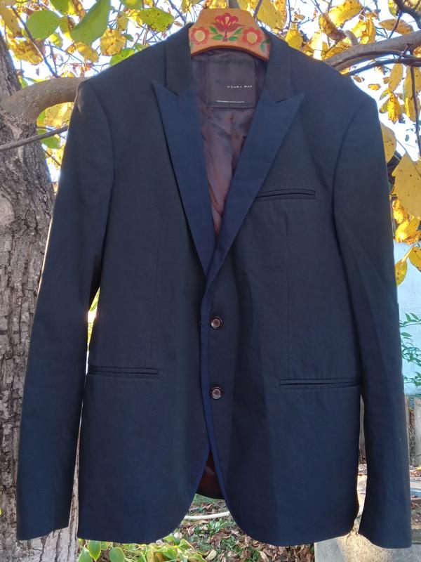 Піджак чорний ,лацкани темно-сині, пог 56, плечі 48,рукав 66,5 довжина 73, по спинці дві шліци