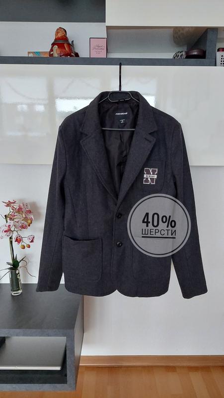 Стильный молодёжный пиджак,плотный с добавлением 40% шерсти,цвет темно серый,застегивается на 2 пуговицы,снаружи 3 кармана и 1 внутри,сзади шлица Состояние отличное Размер написан М Смотрите замеры: длина от горловины 72 см. от подмышки до подмышки 52.5 см. талия 50 см. по низу 56 см. рукав 67 см. плечи 46 см. пройма 26 см.