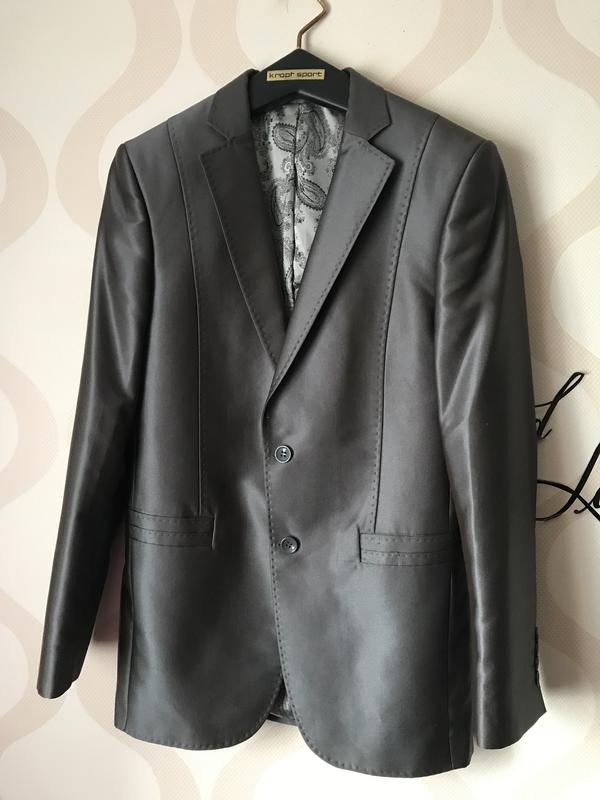 Піджак, в гарному стані. Дефектів немає .Має внутрішні кармани ( є фото) Заміри : Довжина рукава від плеча 62 см Загальна довжина піджака від плеча 72см Ширина в плечах(замір пр спині 43 см