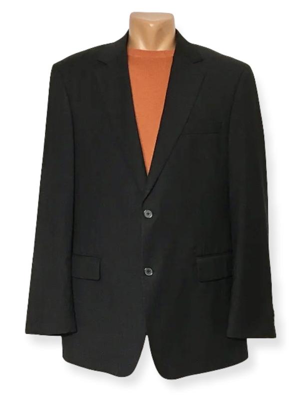 Піджак PIET ZOOMERS пошитий з тканини екстракласу чорного кольору у дрібну смужку з баклажановим відливом, 100% вовна, розмір 52, імпортний. Довжина рукава-68 см. Талія — 12 см. Обсяг грудей — 124 см. Довжина по спині — 81 див. Шліц — 2 шт.