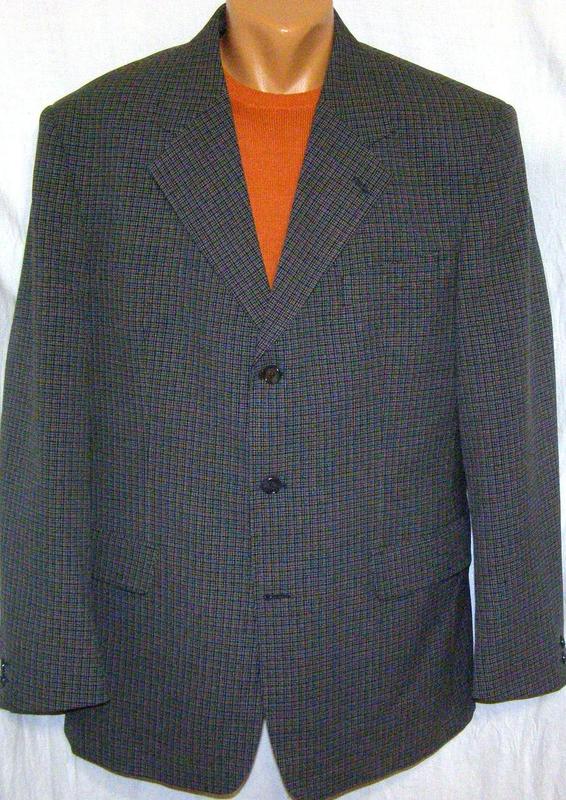 Піджак котоновий Gino di Roma, темно-синього кольору в дрібну сіру карту 80% поліестер + 20%-віскоза, розмір — 54, імпортний. Довжина рукава — 66 см. Обсяг грудей — 124 см. Об'єм талії - 114 см. Довжина по спинці — 83 см. Шліц — ні.
