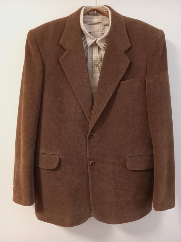 Шикарний піджак із м'якої щільної тканини зі складом: 70% вовна/20% поліестер/10% шовк. Розмір вказаний 46/6, можна на розміри 50-52-54, точніше за замірами: Довжина від плеча 78, по бок. шву 50 плечі 48 ПОГ 56 ПОТ 53 НОС 54 довжина рукава 65, по внутр.шву 45 висота пройми 30 ПО бицепса 21,5 ПЗ в лікті 20 НО краю рукава 16. Колір не такий яскравий, як на перших фото, а світло-коричневий. Стан дуже гарний. Висилаю після повної оплати. Автоматичні замовлення приймаються - продавцю на картку. З б/о та післяплатою не працюю.