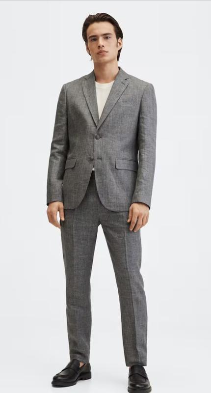Продам чоловічий піджак Mango. 100 % льон. Розмір 54. Пог 58 см, талія(waist) 48 см Приталений. (Slim fit) Тканина принца Уельського. Лацкан з виїмкою. Структуровані плечі. Довгий рукав з манжетами на ґудзиках. Welt кишеня на грудях. Дві бічні кишені з клапанами. Внутрішня підкладка. Внутрішні кишені. Модель 6'1" і носить розмір 50.