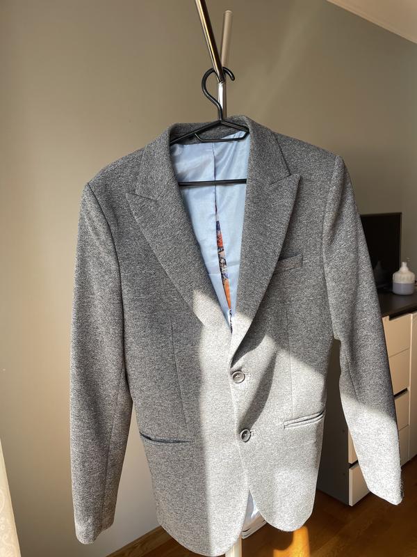 Чоловічий стильний піджак у сірому кольорі . Стан як новий , одягався один раз. Без дефектів . Заміри додаткові скину . На Хс-С. Зріст до 175 На приблизну вагу 65-68 кг